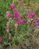 Flowers: Flowering peduncles longer than the leaf and bearing 6-12 flowers in a loose raceme. Campanulate calyx with triangular, acuminate lower teeth shorter than the tube (4.5)5-7(8) mm, upper teeth shorter and obtuse. Pink or purplish-pink corolla, turning bluish-purple when withered; white-green keel. Blooms from April to August.