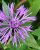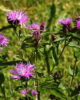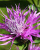 Flowers: The flower heads are pedunculated, solitary or grouped at the branch tips. They have a narrow, ovoid, or globose involucre. The appendage of the involucral bracts is blackish, triangular, with 6-8 short brown fringes per side, as long as they are wide. The bracts are sparse and do not entirely cover the involucre. The flowers are all ligulate, purplish, sometimes the outer ones are radiant. It blooms between May and December.