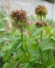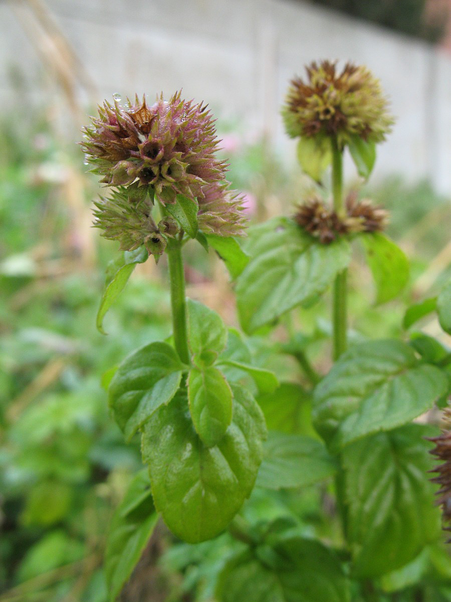 Flowers: The fragrant, hermaphroditic flowers are pink or violet and are gathered in globular inflorescences similar to capitula, at the apex of the stem and in whorls in the axils of the upper leaves, borne on peduncles of about 2.5 cm. Bracts similar to the leaves but smaller and not overtopping the inflorescence. Bracteoles are 3-4 mm. Calyx 3-4 mm, cylindrical, tubular with 5 equal, acute, reddish-green teeth, hairy. Corolla tubular, pink or violet, hairy inside, with 4 lobes, the upper one larger than the others and sometimes bilobed. Blooms from May to October.
