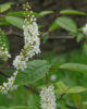 Flowers: Slightly fragrant flowers in simple clusters, 10-15 cm long, reflexed or pendulous, leafy at the base; individual flowers on peduncles about 2 cm long, with a green, semi-spherical, serrated calyx, and 5 white obovate petals measuring 5-9 mm; 18-20 stamens, partially fused with the calyx, with yellow anthers; pistil with a smooth style and small stigma. Blooms from April to June.