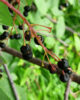 Fruits and seeds: Fruits are spherical drupes (6-7 mm), without the residual calyx, ranging in color from green to red to blackish-purple, shiny, ripening in midsummer. Small and wrinkled stone.